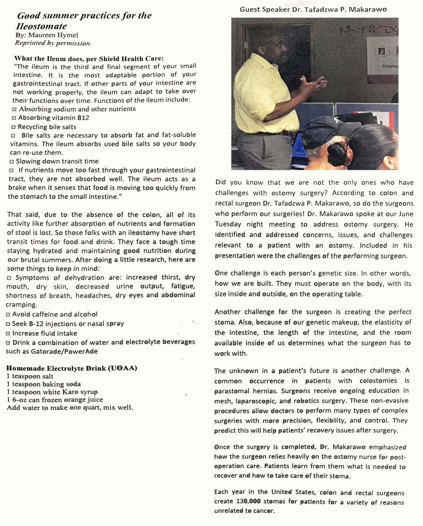 Dr. Makarawo's Guest Speaking Discussion On Good Summer Practices For The Ileostomate